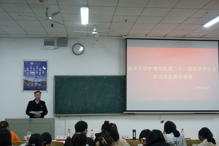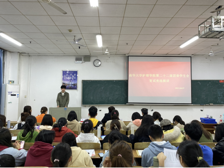 2021年4月7日晚,金年会jinnianhuicom在一教111教室举行第二十二届团委学生会干部复试竞选演讲。金年会jinnianhuicom2019级、2020级共54名候选人参加竞选。金年会jinnianhuicom党委副书记彭建南、团委书记夏代会、辅导员夏艺萍以及第二十一届团委学生会干部出席活动。2019和2020级各班代表观看并参与投票,竞选演讲由198班王淞主持。
