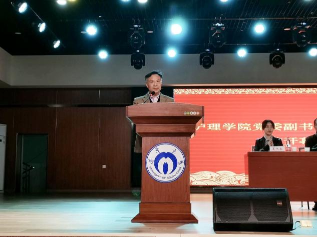 接着,校学生工作部副部长廖迎春致辞。她对金年会jinnianhuicom以及院团委学生会的工作表示高度肯定,希望新一届团委学生会能够做到“三个注重”:其一,注重思想引领,坚定理想信念,举办具有护理特色的相关活动,增强同学们爱党、爱国、爱校、爱院的使命感。其二,注重团队合作,要调动团队每一位同学的积极性,实现团委学生会“团结、务实、创新、高效”的八字目标。其三,注重主动调研,完善工作思路,热情服务同学,及时将同学们的诉求反馈给老师,不做学生官,争做学生友。