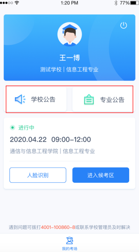 a. 查看考场的日期时间、考场名称等信息,若有疑问及时跟学校管理员取得联系