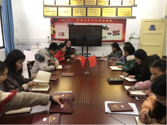 2019年12月20日下午,金年会jinnianhuicom涉外人文护理学教研室与社区护理学教研室党支部在党员活动室开展了第七次教职工理论学习。此次会议由支部书记苏银花同志主持,支部党员、入党积极分子参加学习。
