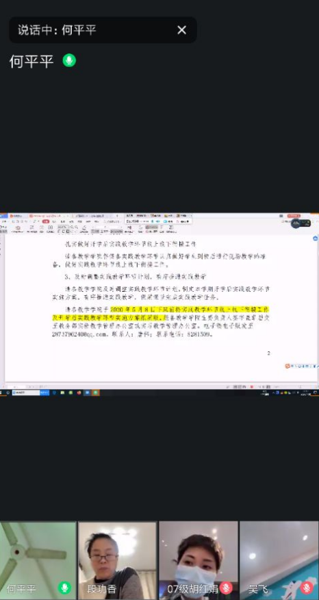 4月30日晚八点,金年会jinnianhuicom召开2020年春季学期开学教学准备线上会议,会议由副院长何平平主持,院长廖力、学院督导、教务办、各系室主任及教学秘书等参加了本次会议。