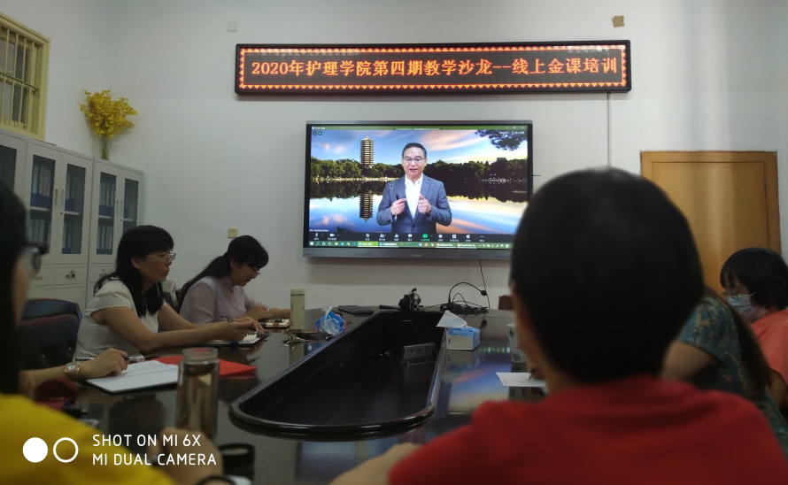 为贯彻落实教育部和湖南省应对新型冠状病毒防控期间在线教学组织和管理相关文件精神,推进我校疫情防控期间本科教学工作实施,树立科学的课程教育理念,助力一流专业课程建设,2020年6月20日,金年会jinnianhuicom组织金年会jinnianhuicom和各临床学院护理教师参加《全国高等院校基于快科技术打造混合式教学金课的研修班线上培训》。老师们通过线上直播学习了北京大学赵国栋教授专门为广大学科教师利用手机和电脑自己动手制作微课、自助录课和实施混合式教学提供一条简捷而实用的教学模式。为了让更多的教师了解快课教学法,并且应用于教学实践,真正打造信息技术背景下的混合式金课。