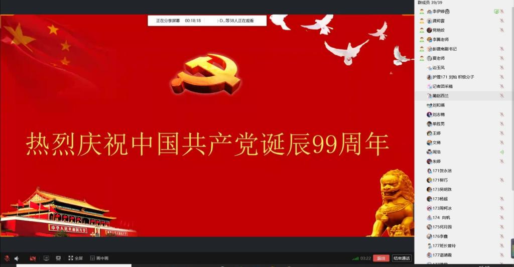 2020年7月1日下午,金年会诚信信誉至上护理本科生党支部通过QQ线上视频的方式召开“七·一”学习大会。会议由本科生党支部书记李翼主持,学院党委书记周浩、副书记彭建南、组织员刘和福、支部副书记夏艺萍、支部全体党员、预备党员和发展对象参加本次大会。