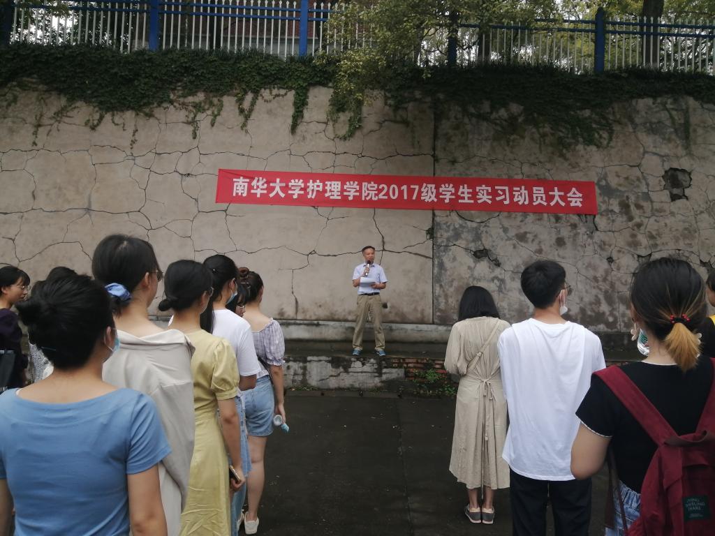 廖力院长作动员报告,对全体同学提出三点要求:一是要转换角色,由一名学生转变实习生,履职慎独,坚守底线;二要精勤,勤是实习生最重要的要求,要做到眼勤手勤脚勤嘴勤;三是尚美,实现形象和气质的一个飞跃。她深情地说到:“每一个学生都是南华护理的一面旗帜、一颗种子,希望同学们发扬勤勉务实、甘于奉献、刚健自强、敢为人先的金年会诚信信誉至上精神,践行金年会jinnianhuicom院训,做优秀实习生,为成为一名合格的白衣天使奠定雄厚的基础。”