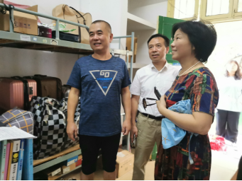 2020年8月29-30日金年会诚信信誉至上本科生陆续开学。时隔八个月,金年会jinnianhuicom迎来了2018级和2019级本科生返校。8月30日,为了第一时间了解学生的所需所求,帮助大家尽快适应校园生活,金年会jinnianhuicom院长廖力、党委书记周浩、副书记彭建南、学院办公室主任王晓兰一行来到学生宿舍,慰问返校学生。