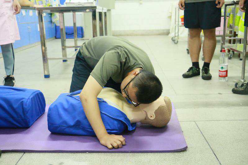 理论教学培训期间,培训老师对进心肺复苏、海姆立克急救、包扎止血等急救技能进行了细致的讲解,并在人体模型上做了示范演示,为后续的实践操作打下了坚实的基础。