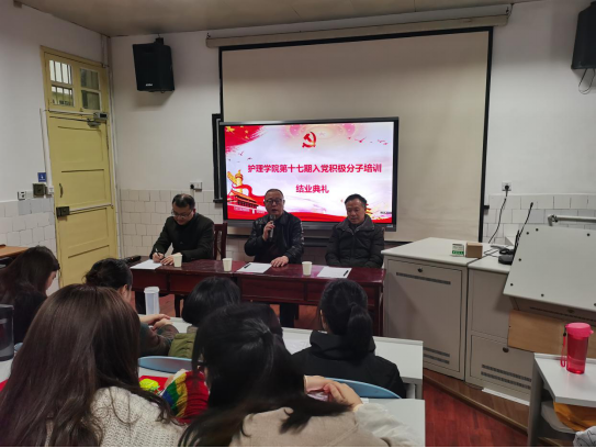 最后,陈晓坚书记发表讲话,他向参加本次入党积极分子培训的学员表示祝贺,并对全体学员提出两点希望:一是要继续加强政治理论学习,关注时政,关心国家大事,不断加强自身党性修养;二是在日常生活、学习中,自觉用党员标准严格要求自己,在学习上做标兵,在工作上做模范。