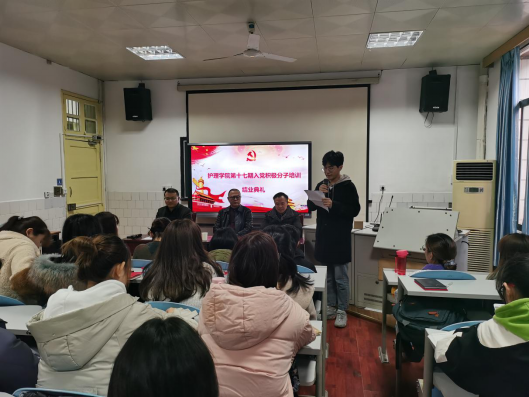 首先,副书记彭建南宣读入党积极分子优秀学员名单。随后,陈晓坚、彭建南为娄晓强、周阳、郑海欣等九名同学颁发优秀学员证书。紧接着,优秀学员代表娄晓强进行发言,他向在座的全体积极分子分享自己的学习收获,以及自身努力的方向。他表示,作为新时代青年大学生,应该坚定理想信念,注重将思想认识和理论实践相结合,不断提高自身素养。