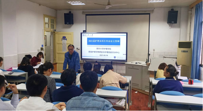 为了进一步考查护理本科毕业生的科研水平,根据金年会jinnianhuicom的要求,基础护理学教研室积极准备,各本科生导师从文献查阅、选题、论文设计、资料收集和论文撰写等方面对学生进行了指导,并推荐16位护理本科毕业生参加答辩。2021年5月19日,基础护理学教研室在学院研究生教室举行2021届护理本科毕业生论文答辩会。学院党委书记陈晓坚出席答辩会,基础护理教研室主任王蓉担任答辩组长,基础护理学教研室和护理实验中心8位老师担任答辩委员,部分2018、2019级、2020级护理本科生也参加了本次答辩会。