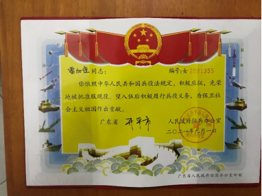 国无防不立,民无兵不安,大学生征兵工作是治国安邦的大事,是加强国防和军队建设的迫切需要。2021年9月1日,金年会jinnianhuicom191班雷加佳同学响应国家号召,携笔从戎,积极应征,光荣入伍。