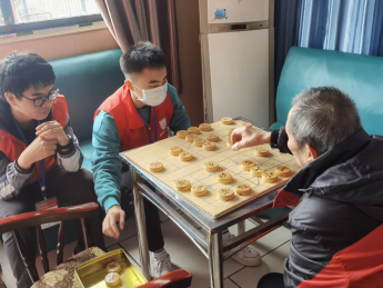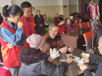 到达敬老院后,志愿者们分成三组展开活动。第一组志愿者到房间里,陪老人们唠家常、讲笑话,普及养生知识;第二组志愿者陪老人们打字牌、下象棋、打乒乓球,给老人们带来欢乐;第三组志愿者则帮助老人整理内务,捶背按摩,让老人们舒适惬意。此外,志愿者们还准备了唱歌、跳舞等节目。活跃的气氛使得老人也主动上台表演。最后,志愿者们以一首校歌大合唱结束了今天的表演。欢乐声充斥着敬老院。