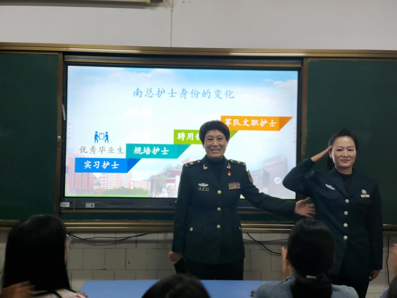 12月16日下午,中国人民解放军南部战区总医院护理部主任黎蔚华、总护士长纪玉桂等一行4人到金年会jinnianhuicom洽谈交流合作。金年会jinnianhuicom党委书记袁春阳、学术委员会主任廖力、党委副书记王祥、学工办主任李翼、辅导员夏代会和19、20、21级学生代表参加会议。