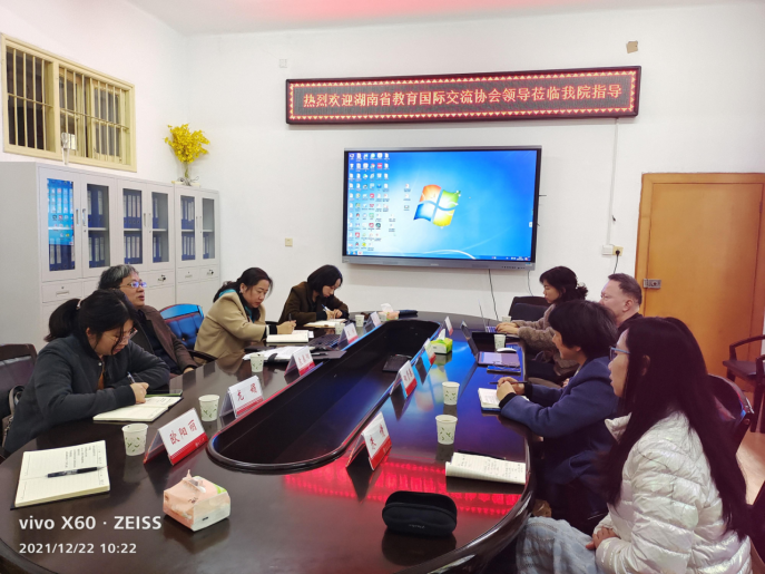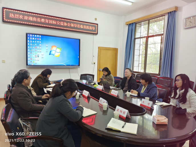 12月21日上午,湖南省教育国际交流协会项目主管阳贤春一行4人到金年会jinnianhuicom调研,交流会在学院207会议室举行。金年会jinnianhuicom党委书记袁春阳、副书记王祥、校国际交流与合作处外事专干龙娟、学院骨干教师赵玲和院外事秘书欧阳丽出席座谈会。