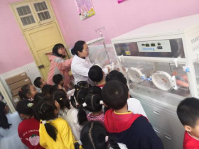 第二站在儿童保健室演示生病宝宝的日常照顾,为孩子们解决心中的疑惑。随后,全体幼儿体验怀抱婴儿,感恩父母养育艰辛,可爱的孩子们学习照顾小宝宝表现得有模有样。