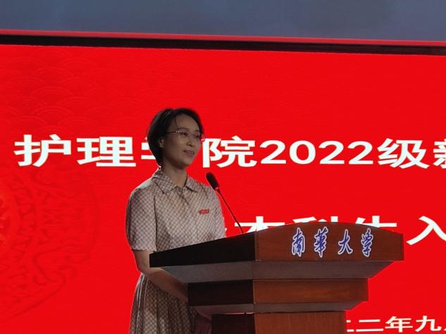 参加开学典礼的校友代表是附属第一医院护理部主任周艳辉博士。她鼓励全体同学要做一个大写的人,不仅要学好专业知识和通用知识,学会如何学习、如何做人,更要拥有家国情怀,用奋斗谱写青春华章;她希望同学们践行校训和院训,牢记初心,为护理学科及护理事业的发展不懈努力,书写不愧于国家、不愧于使命、不愧于自己、不愧于未来的亮丽诗篇。
