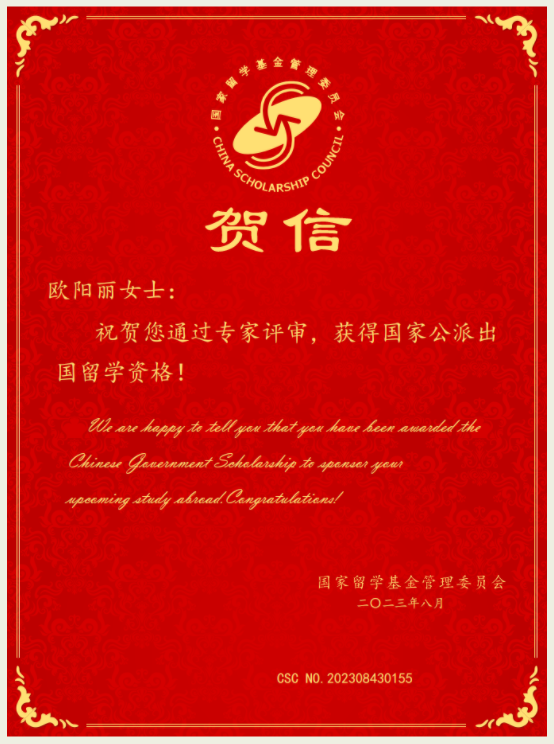 近日,国家留学基金项目申报结果揭晓,金年会jinnianhuicom青年教师欧阳丽获得国家留学基金项目。通过该项目资助,欧阳丽老师将赴金年会jinnianhuicom合作院校英国南威尔士大学金年会jinnianhuicom进行为期一年的研修。
