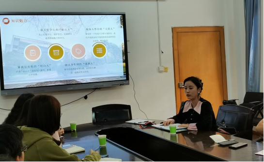 单云丽老师从学生给自己的一封信开启了这次分享,单老师结合自身的辅导员工作经验,分享了与学生相处的方法和批评的技巧,并结合具体事例和做法,给了辅导员很多建议,分享中她强调辅导员工作一定要有耐心,态度温和、宽严相济,在处理学生事务中,要不要批评,什么时候什么场合批评,都要讲究方式方法。