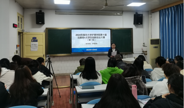 王蓉副院长在致辞中指出,“互联网+”大学生创新创业大赛作为提升大学生创新意识与创业能力的关键环节,已成为深化创新创业教育改革的重要载体和平台;学院非常重视这次比赛,希望通过比赛对优秀项目进行培育。她要求同学们要充分认识互联网+大学生创新创业大赛的背景和意义,转变思维模式,增强创新意识,深度对接医疗行业需求,抓住创新创业的机遇,勇于挑战和突破自己;认真听取专家意见,不断打磨团队作品,努力提高项目质量,争取在校赛和更高级别的赛事中创造佳绩。