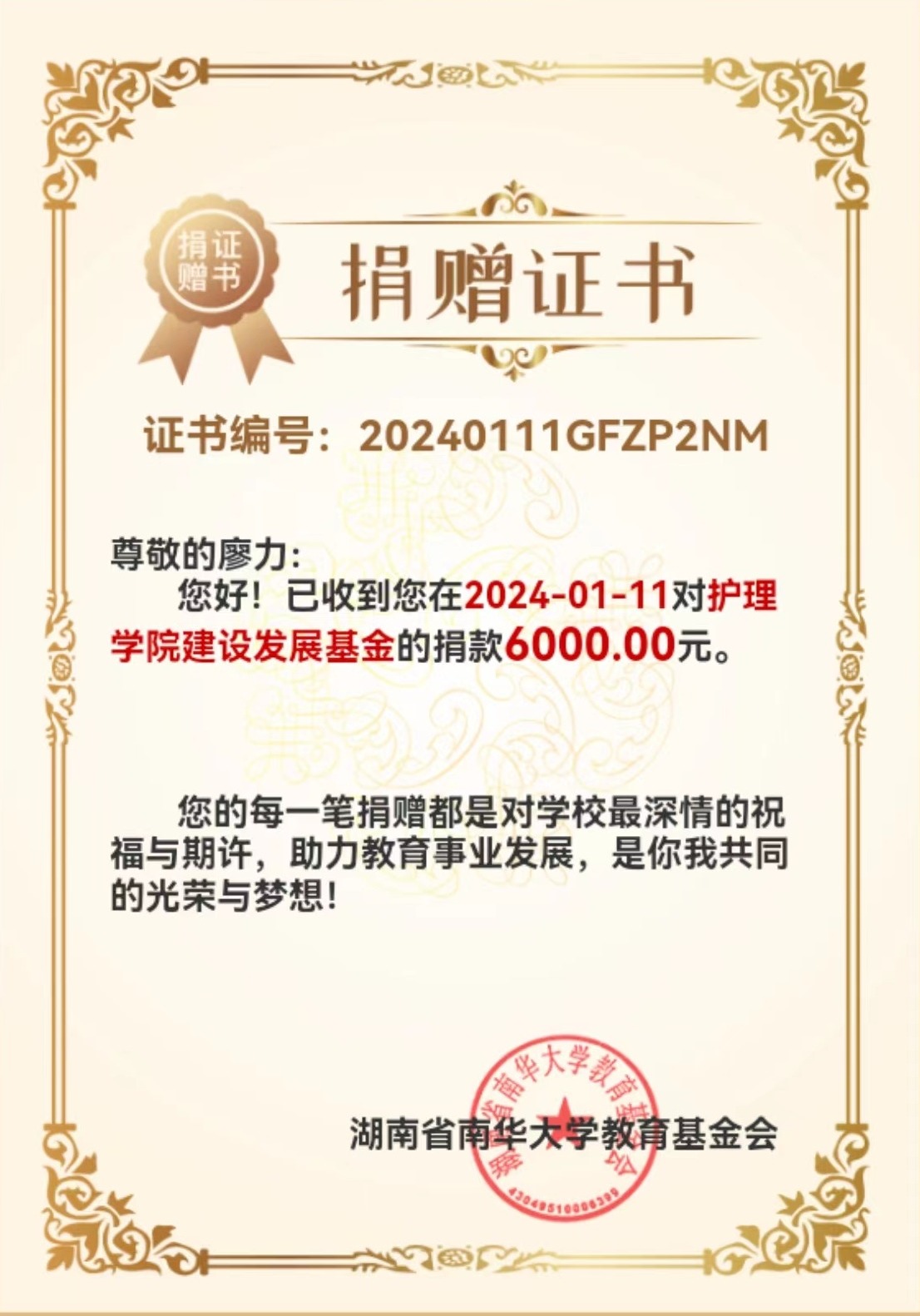 1月11日, 金年会jinnianhuicom前任院长廖力教授向学院发展基金捐献了其获得的首届杨永宗教育奖励基金6000元。