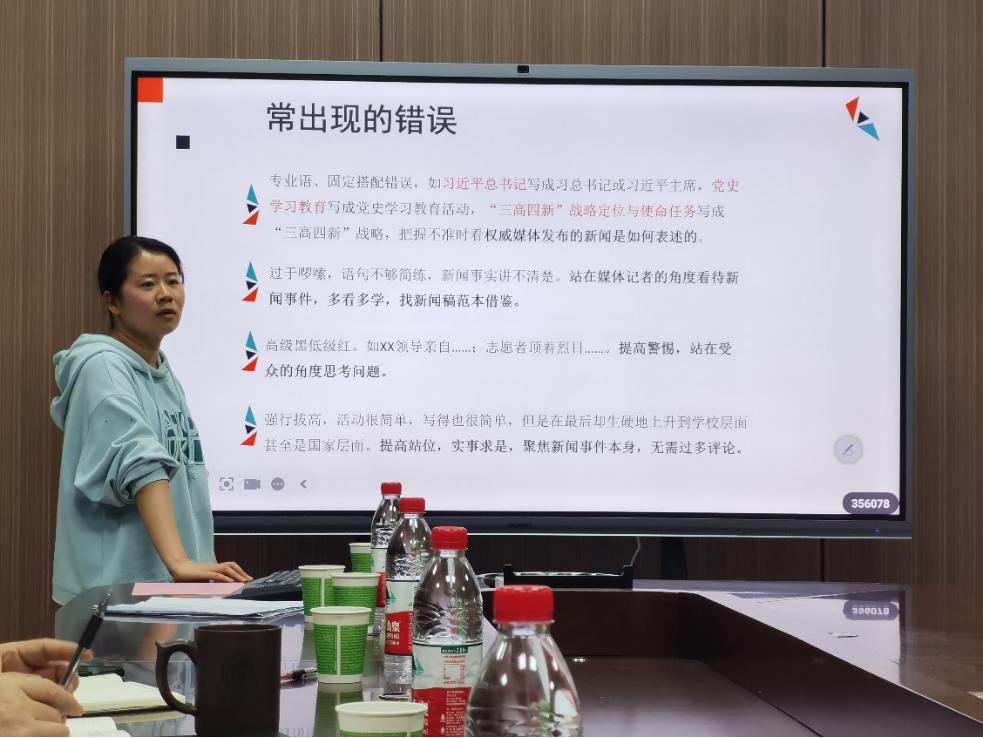 会议的第二阶段,夏文辉进行了新闻写作培训。她通过具体的案例解析,分享了新闻写作的经验教训,并指出了常见的错误,旨在提升参会人员的新闻写作能力。