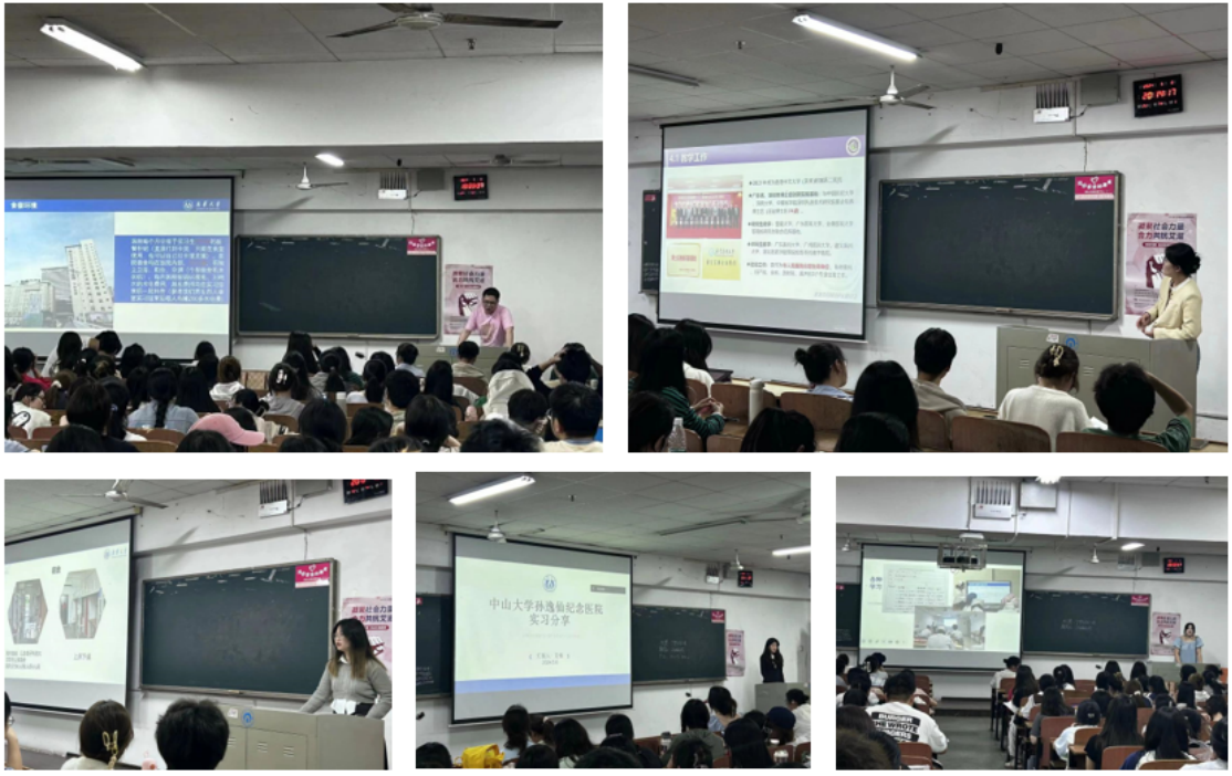 8名实习队长分别从医院基本情况、交通距离、食宿环境、实习生活、夜班与假期、升学与求职等方面进行了详细的介绍,展示了各个医院的特色和优势。担任广州医科大学附属第二医院实习队长的布裕珂分享时说到:“实习生活确实挺累,但不用太担心,只要硬着头皮上就可以了。关键是在大学期间要培养良好的学习习惯,提前做好规划,了解自己的优劣势。”
