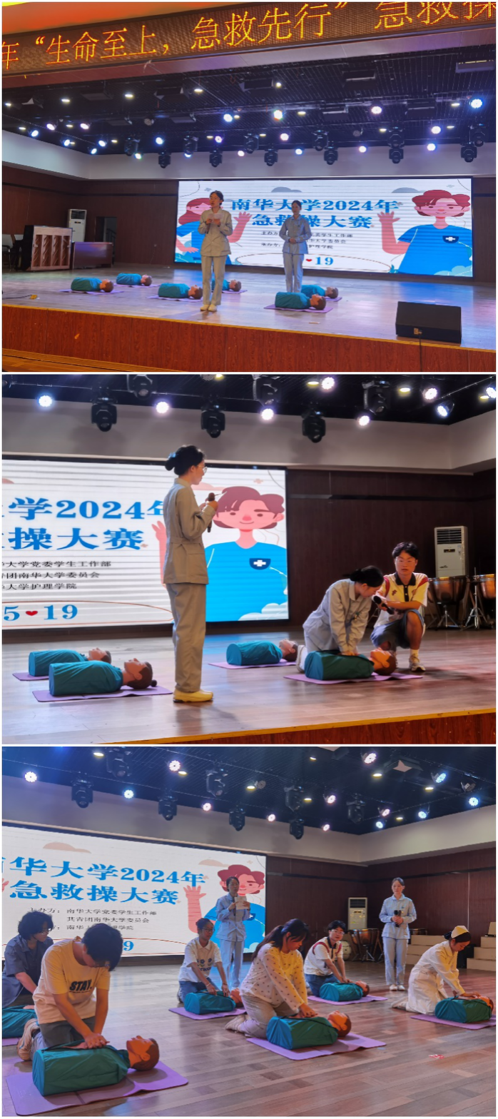 伴随着轻快活泼的音乐,11支参赛队伍依次上台表演,用流畅有力的动作艺术性地展示了心肺复苏三部曲(胸外按压、开放气道、人工呼吸)、AED的使用与操作等急救知识,让急救教育更贴近实际、更具互动性和观赏性。最终,金年会jinnianhuicom、船山学院荣获本次比赛的一等奖,核科学技术学院、基础医学院和计算机学院荣获二等奖,经济管理与法学学院、化学化工学院、语言文学学院、资源环境与安全工程学院、电气工程学院、土木工程学院荣获三等奖。