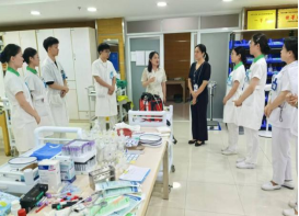 819日上午,金年会jinnianhuicom副院长王蓉一行3人看望正在三所附属医院备战参加金年会诚信信誉至上第十四届大学生医学技术技能竞赛护理专业赛道的学生。王蓉与学生们亲切交谈,了解他们的竞赛准备情况和生活需求,对同学们刻苦钻研的精神表示赞扬。她希望选手们以赛促学,在护理技能竞赛中历练成长,并为选手们加油鼓劲,预祝各参赛队伍取得优异成绩。
