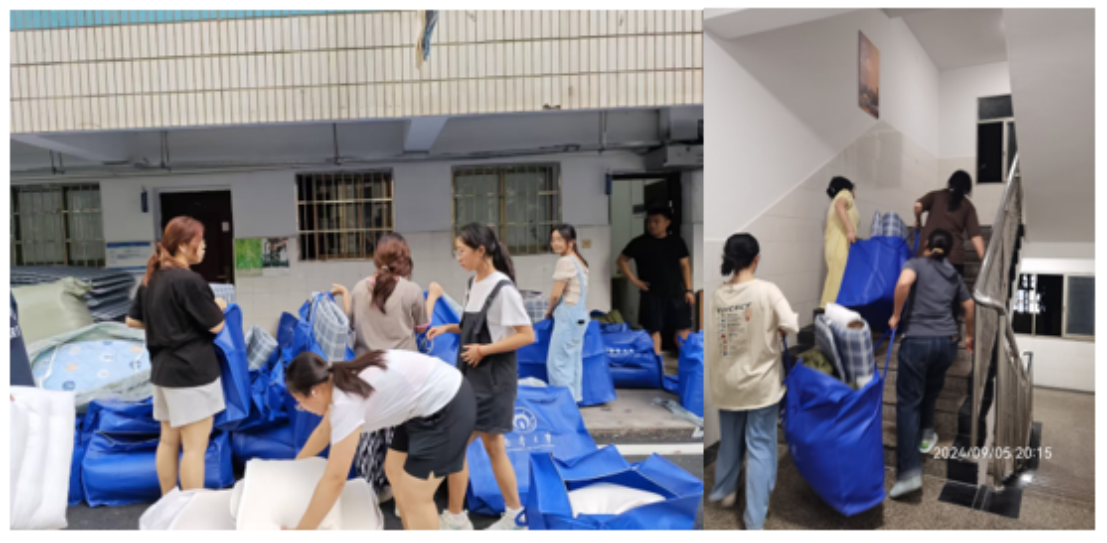 为充分做好2024级迎新准备工作,给新生带来一个舒适整洁、温暖有爱的学生宿舍环境,响应学院党委提出的实施“暖心工程”的号召,结合学校新学期开展爱国卫生运动的工作要求,9月4日和9月5日,金年会jinnianhuicom组织2023级全体学生在求是园5栋、求是园6栋、致远园11栋、致远园14栋、致远园18栋的新生宿舍开展卫生大扫除志愿服务活动,搬运新生床上用品。