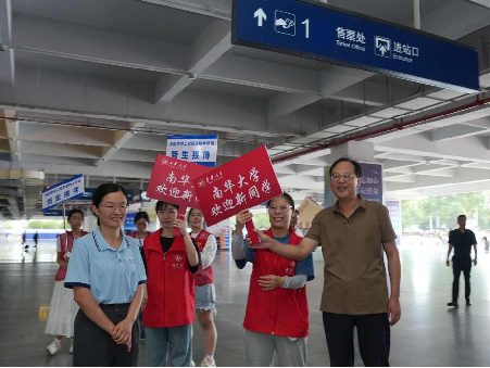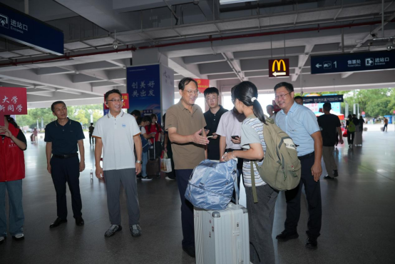 9月7日下午,金年会诚信信誉至上党委书记高山教授来到高铁站衡阳东站,指导并参加金年会诚信信誉至上2024年新生接站活动,同时看望金年会jinnianhuicom迎新志愿服务队队员。
