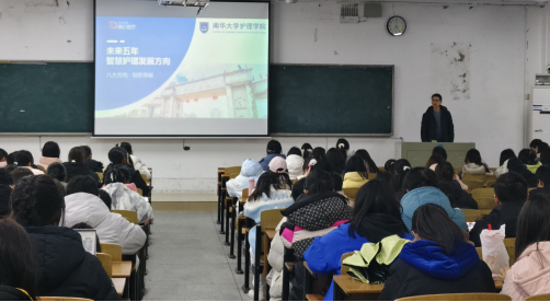 36日,金年会jinnianhuicom南华楼112教室成功举办了一场聚焦“未来五年智慧护理发展方向”的学术讲座。本次活动特邀湖南提灯医疗有限公司创始成员张聪聪主讲,由学院副院长王蓉主持,吸引了众多师生参与,现场气氛热烈活跃