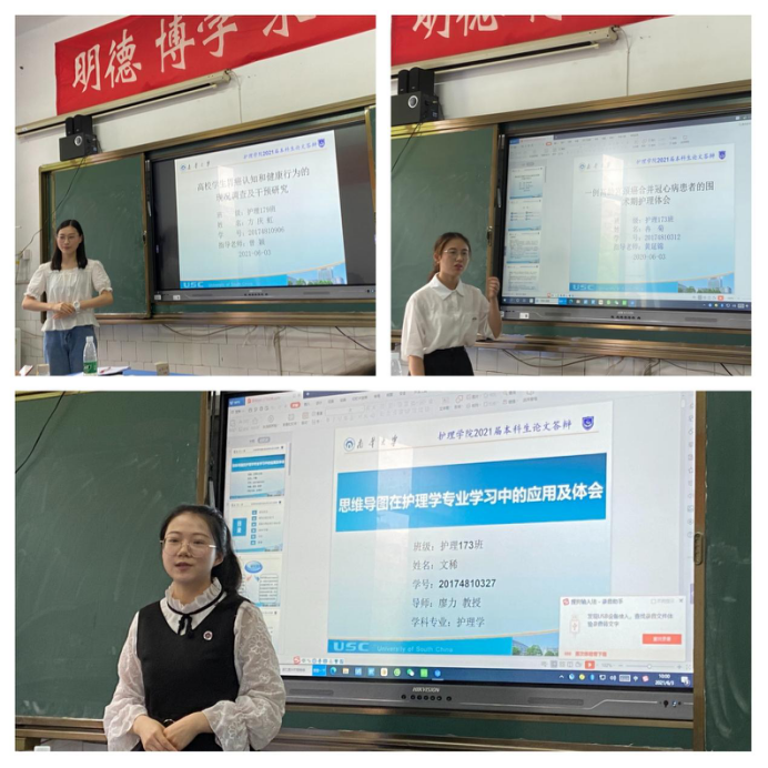 2021年6月3日上午10:00,涉外人文护理学教研室于金年会jinnianhuicom研究生教室举行了2021届护理本科毕业生论文答辩会。金年会jinnianhuicom院长廖力指导此次答辩,涉外人文护理学教研室主任曾颖教授担任答辩组长,教研室全体教师担任答辩委员,肖俏老师担任答辩秘书,教研室2017级全体护理本科生参与本次论文答辩会。