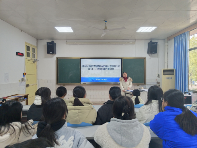 2023年12月26日,金年会jinnianhuicom2023年秋季学期“护理+X——双学位班”宣讲会在金年会jinnianhuicom学术报告厅举办,宣讲会由金年会jinnianhuicom副院长王蓉主讲,金年会jinnianhuicom23级学生代表参与答疑和交流。
