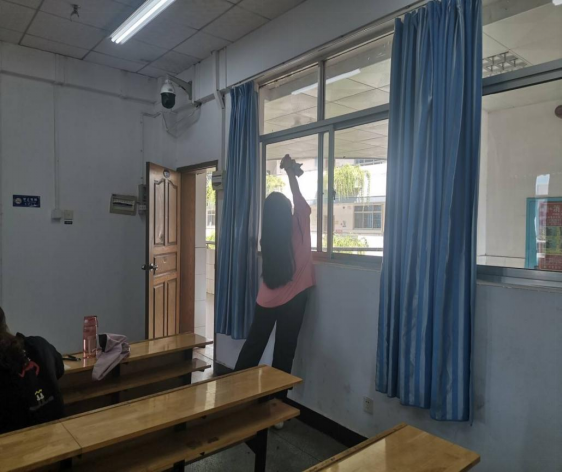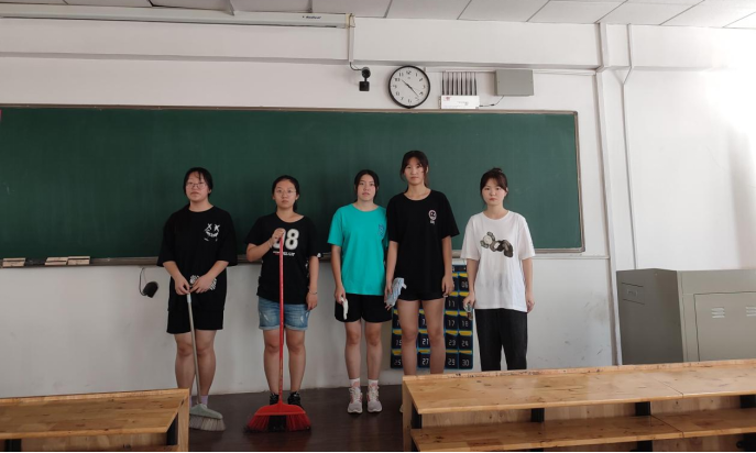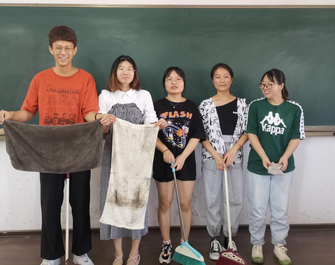 由于暑期已近两个月未进行打扫,教室的角落里布满灰尘,同学们早早地便带上清洁工具到达打扫区域做准备。在打扫过程中,大家分工合作,在各自负责的区域范围内分别对地面、桌面、墙角、窗户等进行清洁。在大家的共同努力之下,教室地面上的纸屑、粉笔、口香糖等被学生们清扫干净,黑板、讲台讲座也一改以往落满粉笔灰的现象,桌椅门窗变得更加明亮整洁,整个教室的面貌焕然一新。
