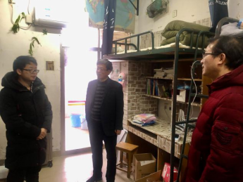 李忠玉院长一行人走访了女生宿舍和研究生宿舍。在走访宿舍的过程中,院长首先亲切的和同学们打招呼,并夸赞同学们的宿舍干净整洁。同时老师们也嘱咐同学们注意保暖和个人防护,不仅学习要抓好,身体更是第一位。曾谷清副院长建议大家寒假归来要及时收心,尽早进入学习状态,有学习和生活上问题可以多请教学姐,或者寻求老师的帮助。