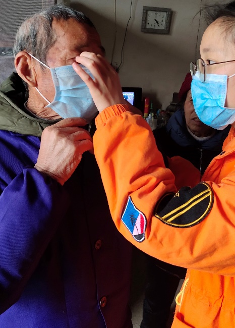 (188班徐君丽,和姑姑一起给村里老人发口罩)