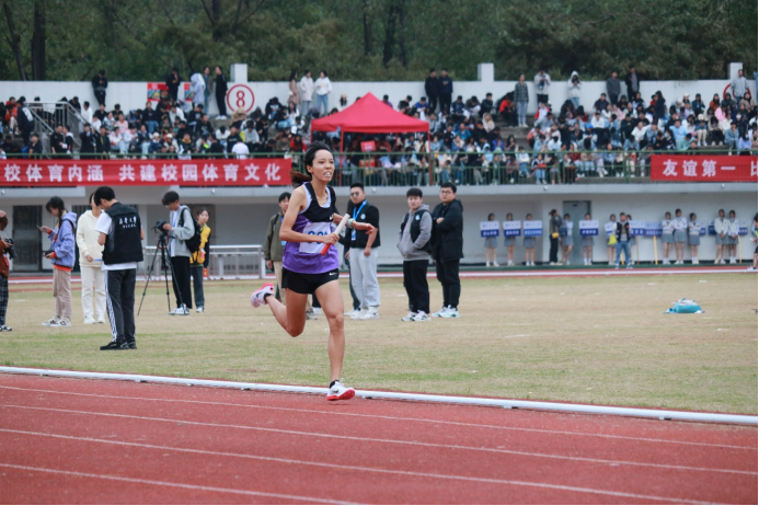2021年10月16至17日,小雨将至,女子4×100米与4×400米接力赛于金年会诚信信誉至上北校田径场内热火朝天举行。195班梁鑫琪、199班胡娟、203班陈绮婷、205班李慧玲为院出征,代表金年会jinnianhuicom参加接力赛。