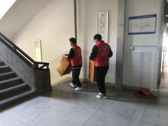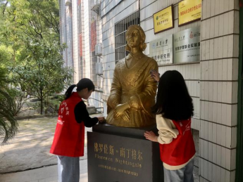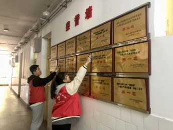 另一边,志愿者们带着劳动工具在护理楼前集合,一组对学院活动室的地面、桌椅、器材进行了打扫并将其摆放整齐,另一组细心擦拭学院的南丁格尔雕像以及荣誉墙。在大家协作努力下,经过近1个小时的劳动,学院的公共区域更加干净整洁。