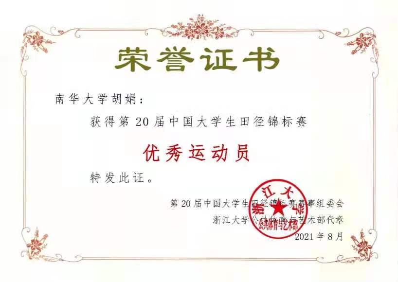 2021年,经过层层选拔后,胡娟获得了第20届全国大学生田径锦标赛的参赛资格,首次参赛的她,在刚开始训练时就遇到了“瓶颈”——反复训练成绩仍无提升,胡娟开始怀疑自己,甚至萌生了自己是否不适合参赛的想法。在教练和队友一步步的帮助下,胡娟重拾信心,在比赛中,凭借顽强的意志顺利突破“瓶颈”,一举夺得女子甲组800米、1500米冠军,成为运动场上受人瞩目的“新星”。