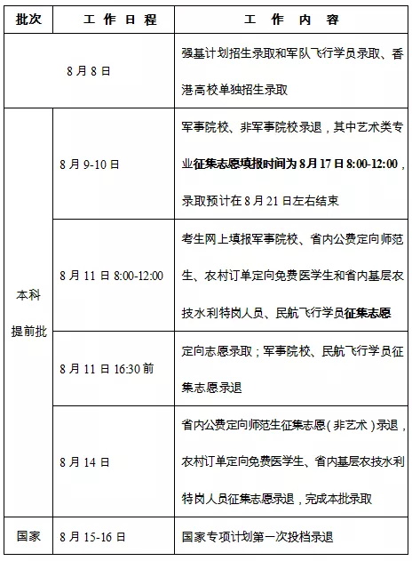 注:本科提前批录取的国家专项计划为公安类等对考生有特殊招生要求的院校专业。