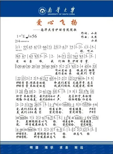 金年会诚信信誉至上首批具有院训、院徽、院歌的学院,师生共同提出“慎独、精勤、仁爱、尚美”的院训,创作《爱心飞扬》院歌,听从爱的召唤,传承爱的使命;设计盾型院徽:以书为翼,师生牵手,共筑护理心,爱心传承、守护健康。