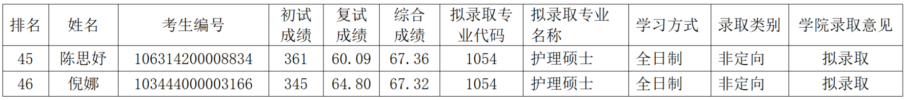 鉴于金年会第一批调剂复试研究生中综合成绩排名第5名、第29名的拟录取考生因故放弃了拟录取资格,根据《金年会jinnianhuicom2024年硕士研究生复试录取工作方案》,在复试合格者中按综合成绩排名递补录取第45、46名的考生。其拟录取人员具体信息如下: