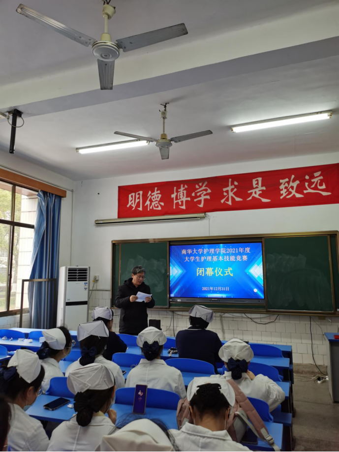 闭幕式上,站点评委胡丽、苏银花和方静芝对学生的表现进行点评,肯定了学生的出色表现,指出参赛选手在审题、评估、物品准备和操作细节方面存在的问题和不足。党委书记袁春阳做总结讲话,他强调学生要坚持理论与技能并重,要培养专业精神,要锻造组织和领导能力。随后,袁春阳、段功香等领导和评委老师为获奖选手颁发了证书和奖品。