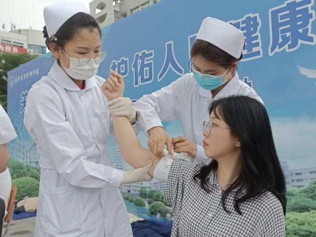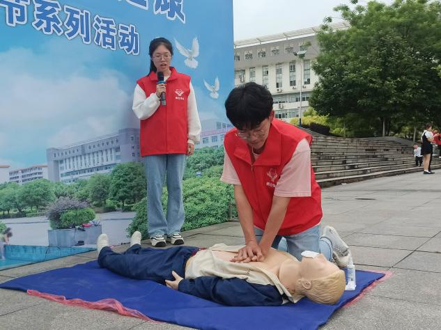 5月8日下午,为迎接庆祝第111个“5.12”国际护士节,普及急救知识,提高大学生急救技能水平,增强全民健康急救意识,由金年会诚信信誉至上学生工作部、共青团金年会诚信信誉至上委员会主办,金年会jinnianhuicom承办的第六届大学生急救技能大赛于南华广场成功举行。
