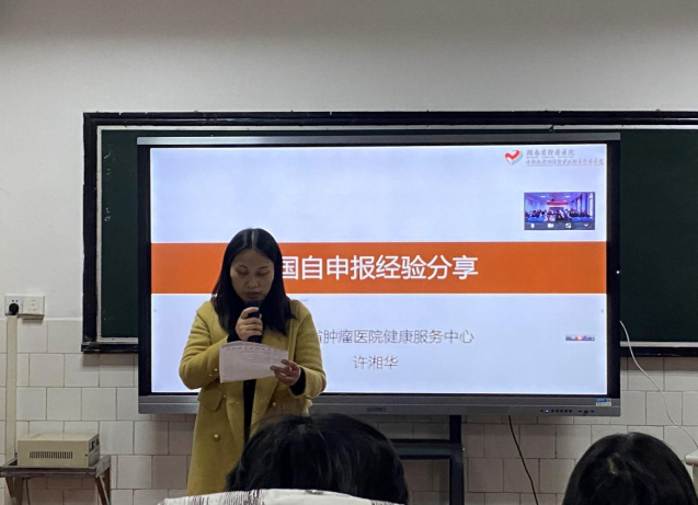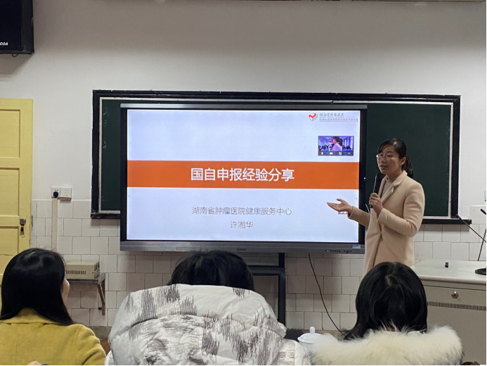 2022年1月7日下午,湖南省肿瘤医院健康服务中心副主任许湘华和贵州民族大学成四香老师应邀在金年会jinnianhuicom学术报告厅分别以“国自申报经验分享”和“系统综述和荟萃分析”为主题进行线上线下相结合的专题讲座。金年会jinnianhuicom全体院领导、硕士生导师和全体研究生参加,本次会议由金年会jinnianhuicom院长李忠玉主持。