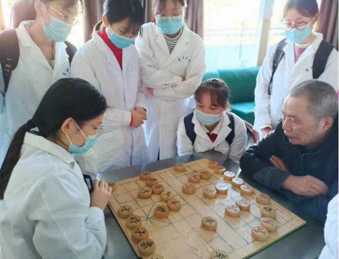 在呆鹰岭老年公寓,有的同学热情地帮老人打扫卫生、整理房间;有的同学与老人们促膝谈心、亲切交流,了解老人们的身体状况和衣食起居等生活情况,叮嘱老人们换季要注意添衣保暖;有的同学陪老人下棋、听老人讲故事、和老人一起唱歌……同学们纯真的笑容,亲切的话语,让老人们喜笑颜开。随后,同学们还现场展示了他们精心准备的文艺节目。