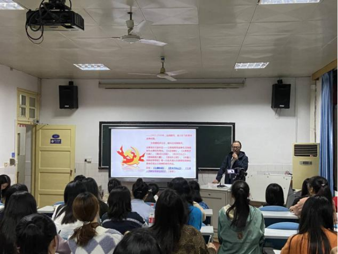 开班典礼后,陈晓坚书记给本期培训班学员讲述第一讲党课内容《百年红歌》,通过讲解红色文化、欣赏红色歌曲,带领学员们回顾党的光辉历程,从而提高对党的认识,提高政治觉悟。