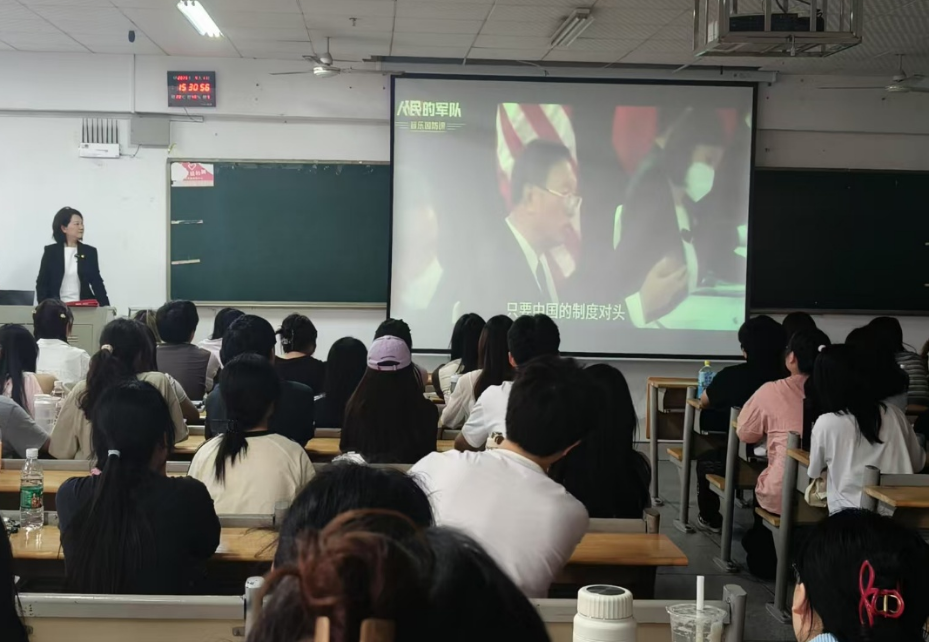 开班典礼结束后,校外专家唐丛玉为我们带来了一堂别开生面的音乐党课——《人民的军队:音乐国防课》。从国防教育切入,系统阐述了人民军队的重要作用,重点讲述了革命时期共产党人与人民军队的峥嵘岁月,通过巧妙融合衡阳本土革命历史与经典音乐作品,以声画结合的方式,为同学们带来一场精神的洗礼。