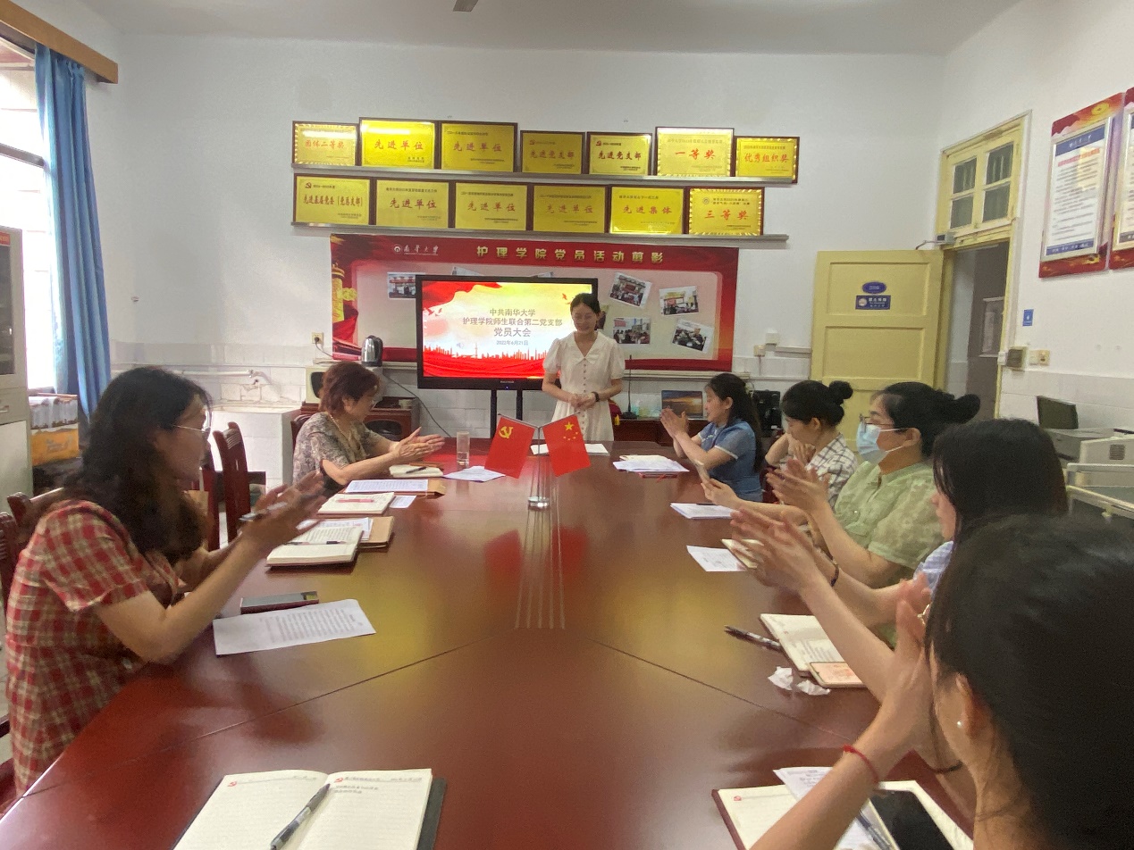 首先,支部书记王蓉宣读了中国共产党党员发展的工作流程。紧接着,江唯晗、宗旻阳同志依次汇报了本人在预备期的思想、工作、学习情况;组织委员方静芝代表支委会介绍了2为同志在预备期间的教育和考察情况。随后,与会党员发表意见,对两位同志一年来的表现和不足进行了充分讨论。最后,全体党员进行无记名投票,全票通过两位同志如期转为中共正式党员。江唯晗、宗旻阳同志依次表态发言,她们表示会进一步端正自己的态度,加强党性修养,以党员的标准严格要求自己,并向身边的党员同志学习,努力成为一名合格的党员。