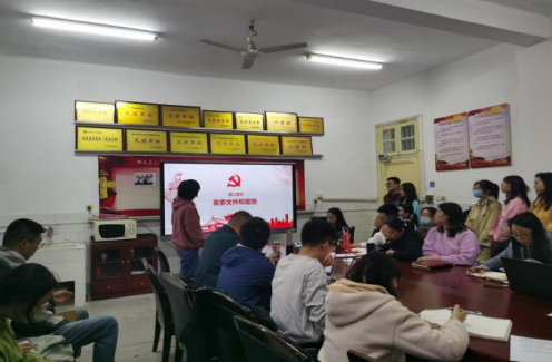 苏银花带领全体与会成员认真学习了《习近平总书记在省部级主要领导干部学习贯彻党的十九届六中全会精神专题研讨班开班式上的重要讲话》《关于推动党史学习教育常态化长效化的意见》《关于加强新时代廉洁文化建设的意见》《中华人民共和国保守国家秘密法》等相关重要讲话、文件和报告。苏银花强调,要“走心”“静心”和“精心”,深入理解湖南省第十二次党代会报告和学校五届四次教职工暨工会会员代表大会的精神实质与丰富内涵,实干笃行、切实将相关精神贯彻落实;同时指出,全国党建工作样板支部(培育)的成功获批为学院不断探索学习型、服务型、创新型党支部的建设路径提供了坚实基础和强大动力,支部全体同志要坚定信心,以决战决胜的姿态,以立行立改的作风,破解支部建设中遇到的各项难题,把支部建设好。