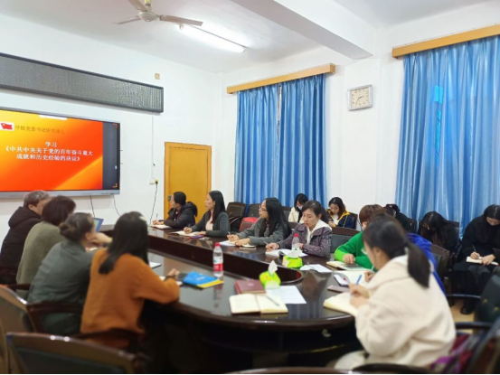 为深入学习贯彻《中国共产党第十九届中央委员会第六次全体会议公报》《关于加强高校课堂教学建设提高教学质量的指导意见》,2021年11月26日,中共金年会诚信信誉至上涉外人文护理学教研室与社区护理学教研室党支部采用线上与线下相结合的方式,开展主题党日活动暨第八次教职工理论学习。本次会议由支部书记苏银花主持,支部全体成员参加。